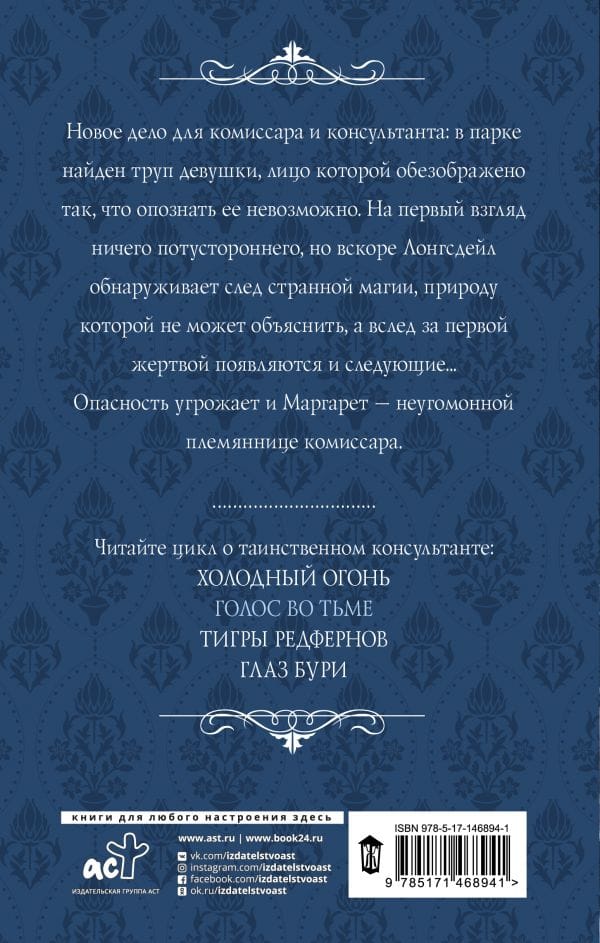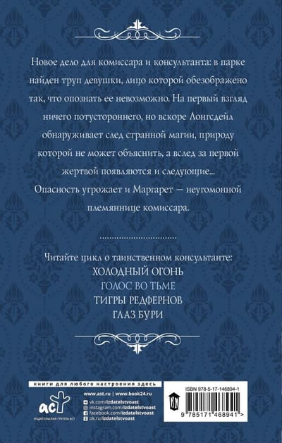 A new case for the commissioner and the counselor: a girl is found dead in the park, her face disfigured so that it is impossible to identify her. At first glance nothing otherworldly, but soon Longsdale discovers a trace of strange magic, the nature of which can not explain, and after the first victim appear and the next ... Margaret, the Commissioner's restless niece, is also in danger.
