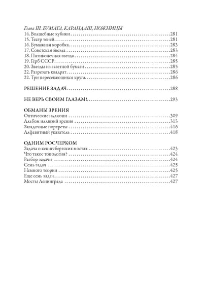 A collection by the outstanding Russian popularizer of science and author of numerous books that develop thinking, Yakov Isidorovich Perelman (1882–1942) includes descriptions of several hundred different tricks, tasks, and puzzles, including fascinating entertainment with paper, coins, and other common objects. The book includes riddles for young physicists, stories about giant numbers, experiments using electrostatics, descriptions of optical illusions, and a story about a method for developing memory. Solutions, answers, and clues are provided. The book is decorated with drawings from Perelman’s first articles and books.