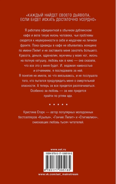 One day, a mysterious stranger named Lilith appears in a Dublin cafe where Sky Polanski works and offers Sky a job as a secretary in her clinic in Boston. Sky is not one of those who are ready for change, but tired of failures in her personal life, she agrees. It soon turns out that under the cover of the clinic there is a very sophisticated business that can give everything: a beautiful life, luxury and adrenaline. But the holiday does not last long: the devil has already prepared his terrible gifts for Sky. "The Hounds of Lilith" is a romantic thriller about reality, which is more terrible than fiction, and about love, which can be the last chance for salvation.