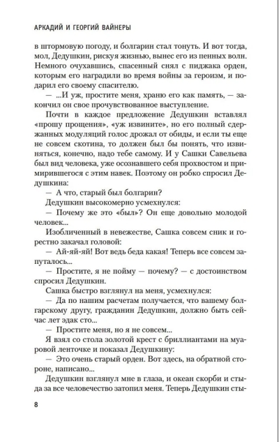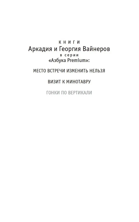 "Vertical Race" (1974) is one of the Vainer brothers' most famous works. Yet, it's also largely unknown: when adapted for the screen, the novel was partially overshadowed by the film of the same name (1982), starring such popular actors as Andrei Myagkov and Valentin Gaft. The film largely retained the superficial plot: the confrontation between investigator Stas Tikhonov and the thief Lyokha Dedushkin, nicknamed "Baton." The struggle between justice and lawlessness, hard work and parasitism, good and evil... Behind this straightforward formula, the book reveals two far-from-sketchy antagonists, with their own doubts, despair, and loneliness. Through the dialogic structure of the narrative, the authors give equal voice to both sides. Particularly compelling is the character of Baton—an intelligent, charming, and tormented "parasite and outcast." Readers will also encounter the famous hero from "The Meeting Place Cannot Be Changed," Sharapov, now a lieutenant colonel in the Moscow Criminal Investigation Department (MUR). The edition also includes the novella "Groping at Noon" (1968). It was after its publication that the Weiners gained widespread recognition. Yury Nagibin called the novella "a fresh start in the development of the detective genre."