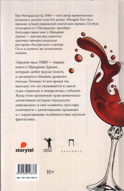 "Bitter Honey" (1985) is the first book about Fredrik Drüm, who loves good food and is fascinated by the mysteries of ancient writing. Somehow it always happens that he finds himself in the thick of strange and unbelievable events. The genre of this ironic adventure-detective story is impossible to define: it combines elements of thriller with detective techniques and with characteristic features of science fiction.