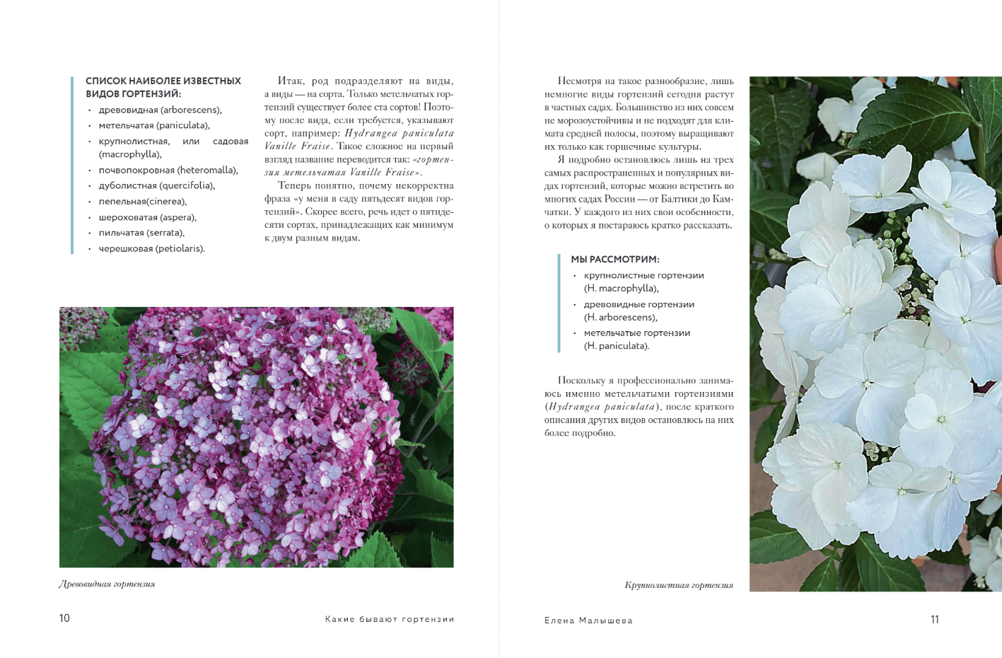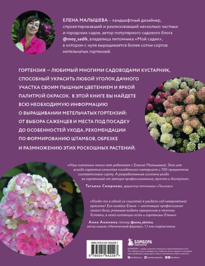 Discover the wonderful world of hydrangeas with this gift encyclopedia. The book is a real treasure trove of knowledge about beautiful flowers, written by an experienced gardener who grows hydrangeas with love and care. The author is a landscape designer who has designed and implemented several private and city gardens, the author of the popular garden blog @moy_sadik, the owner of the nursery of the same name "My Garden", where more than a hundred varieties of panicle hydrangeas are grown from scratch. In this book, you will find all the necessary information about growing panicle hydrangeas: from choosing seedlings and planting sites to the features of care, protection from pests, pruning and propagation of these luxurious plants.