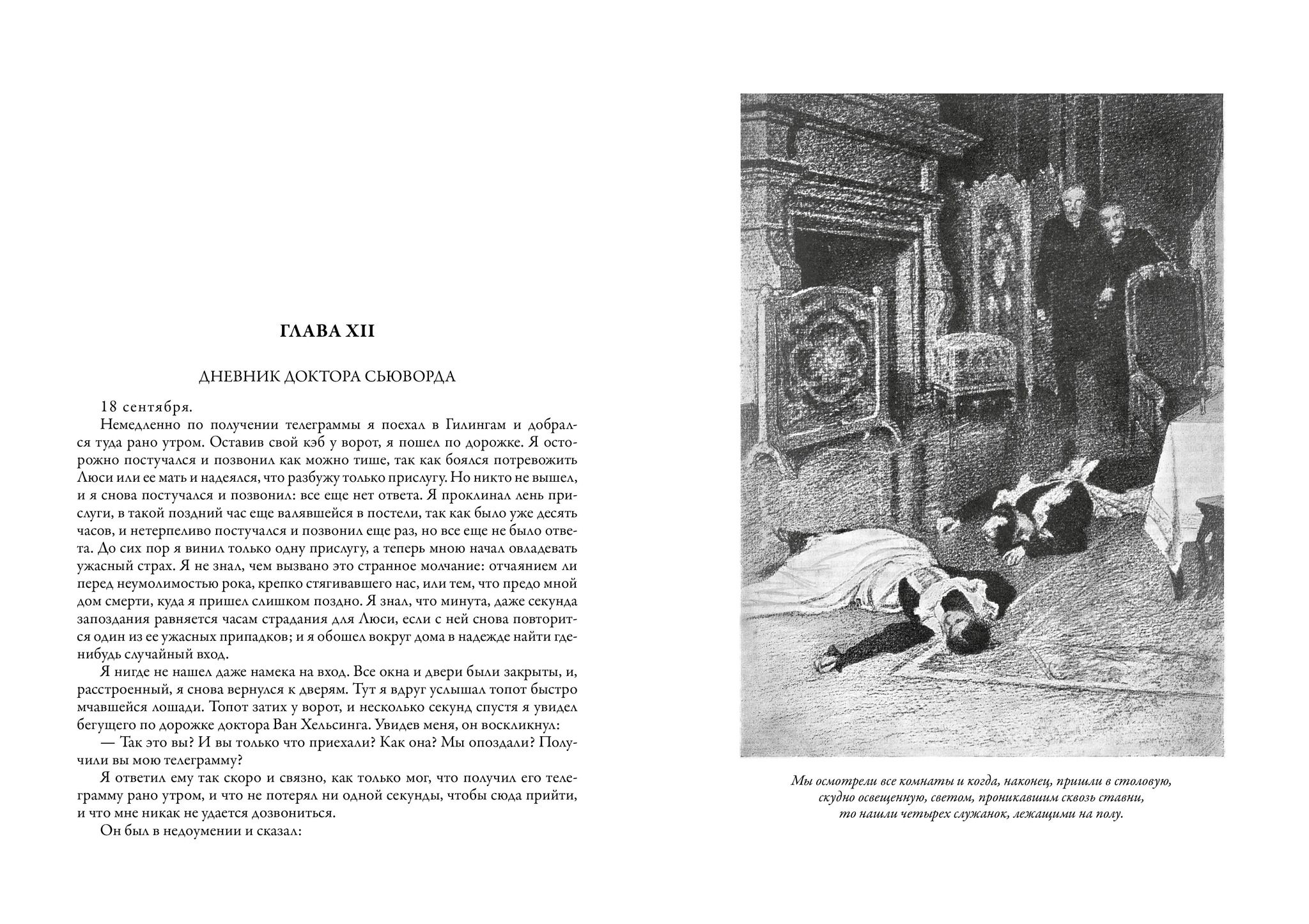 Besides Bram Stoker's iconic novel "Dracula" translated by N. Sandrova and R. Grischenkov, the collection includes the short story "Dracula's Guest" translated by R. Grischenkov, as well as the novel "Vampires. From the Family Chronicle of Count Dracula-Cardi", which is the backstory of Count Dracula described by Stoker. This novel was written in 1912, commissioned by the publishing house V. M. Sablin, by an unknown Russian author who took the pseudonym Baron Olshevri. The book is decorated with black-and-white illustrations by the painter Alfred Rudolfovich Eberling. The novel "Dracula" brought Irish writer Bram Stoker world fame, in the rays of which faded other of his works, and they were written more than two dozen. Interest in ghosts and the afterlife emerged in Stoker in early childhood. The future writer was born in 1847 on the outskirts of Dublin in a Protestant family. A strange ailment did not allow Bram to get out of bed until he was seven years old. At that time, his mother Charlotte read a lot to her son and told him different stories, among which were "horror stories"; they made a particularly strong impression on the boy. Fortunately later Stoker was able to overcome his illness, at the University of Dublin, he even became a good track and field athlete. In London, Stoker met Arthur Conan Doyle, Oscar Wilde and other writers. He began writing his great works when he worked as a manager for the famous British actor Henry Irving. Among them was the novel Dracula, printed in 1897, which later became part of mainstream Western culture. Stoker's prequel, Dracula's Guest, was printed in 1914, two years after the writer's death. In addition to this work, this collection also includes the novel "Vampires. From the Family Chronicle of Count Dracula-Cardi", which is a prequel to Count Dracula. It was written in 1912 by order of the publishing house V. M. Sablin by an unknown Russian author who took the pseudonym Baron Olshevri. There are several versions of who the true author of this intriguing work is. The illustrations for this edition are by the Russian painter A. R. Eberling. R. Eberling. He was born in 1872 in what is now Poland. When he was seventeen years old, he entered the St. Petersburg Academy of Arts. Eberling was a gifted man, he knew several languages and traveled extensively in Europe. Until 1917. Eberling taught at the Drawing School of the Imperial Society for the Encouragement of Arts, worked on book illustrations, did easel painting, and developed the theme of eroticism in art. After the revolution Alfred Rudolfovich continued his pedagogical activity. He created an extensive gallery of portraits of prominent Soviet figures. Among them were the leaders of the country, figures of science and art. The portrait of Lenin on the Soviet banknotes of 1937 issue is his work. On the 1947 and 1957 banknotes this image was used as a watermark. Eberling lived a long life. He died in January 1951 in Leningrad. His paintings and drawings are kept in the
