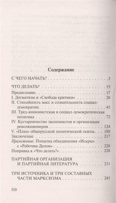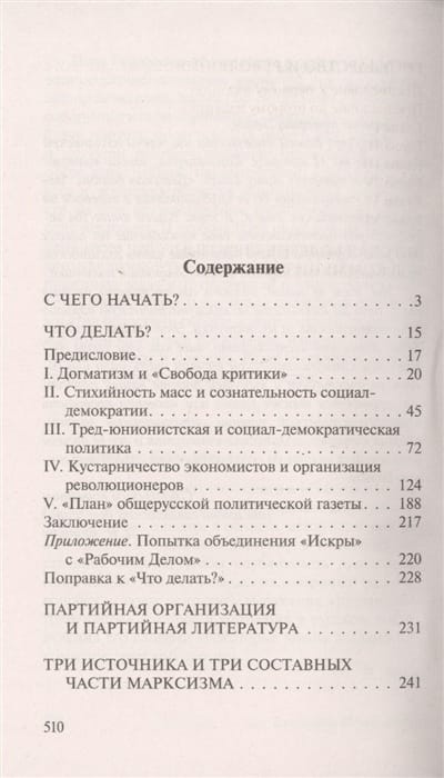 The collection includes Lenin's main works on the philosophy of Marxism, as well as the theory and practice of party and state building: "Where to Begin?", "What to Do?", "Party Organization and Party Literature", "Three Sources and Three Components of Marxism", "The State and Revolution" and "The Childish Disease of 'Leftism' in Communism".
