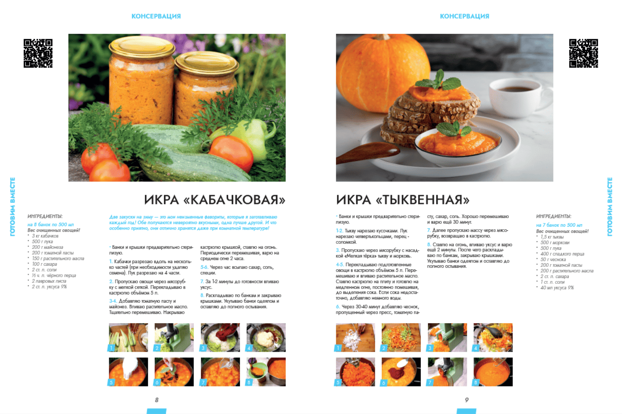 We strived to create a unique format—a book in which you truly cook along with the author. That's why "#CookOnline" isn't just a title, but a reflection of the project's essence. Within the pages of this book, you'll find over 140 dishes and over 1,000 step-by-step photographs, each important step meticulously illustrated. And most importantly, you can scan QR codes, watch video recipes, ask Natalia questions in the chat, and share your results and impressions with other cooks.