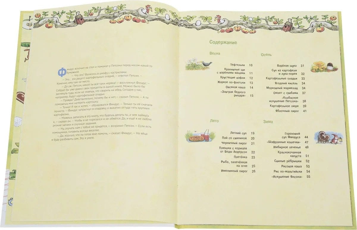 It's no secret that Petson is a bit of a scatterbrain. Flour can be under the couch and pepper in the bicycle basket. His wonderful recipes are scattered all over the house. One day, kitten Findus decided it was time to compile them into a cookbook, and this is what came out of it! Petson and Findus will teach you how to bake pies and cakes, make soups, sour soups, porridge and even carrot marmalade. Petson's recipes are very simple and delicious, and each of them is preceded by a little story about the life of an old man and a kitten. Older children can prepare most of the dishes themselves, while the youngest ones can do the simpler tasks that Findus usually does: roll meatballs out of minced meat, mix sauce, measure milk and flour, or grind breadcrumbs.
