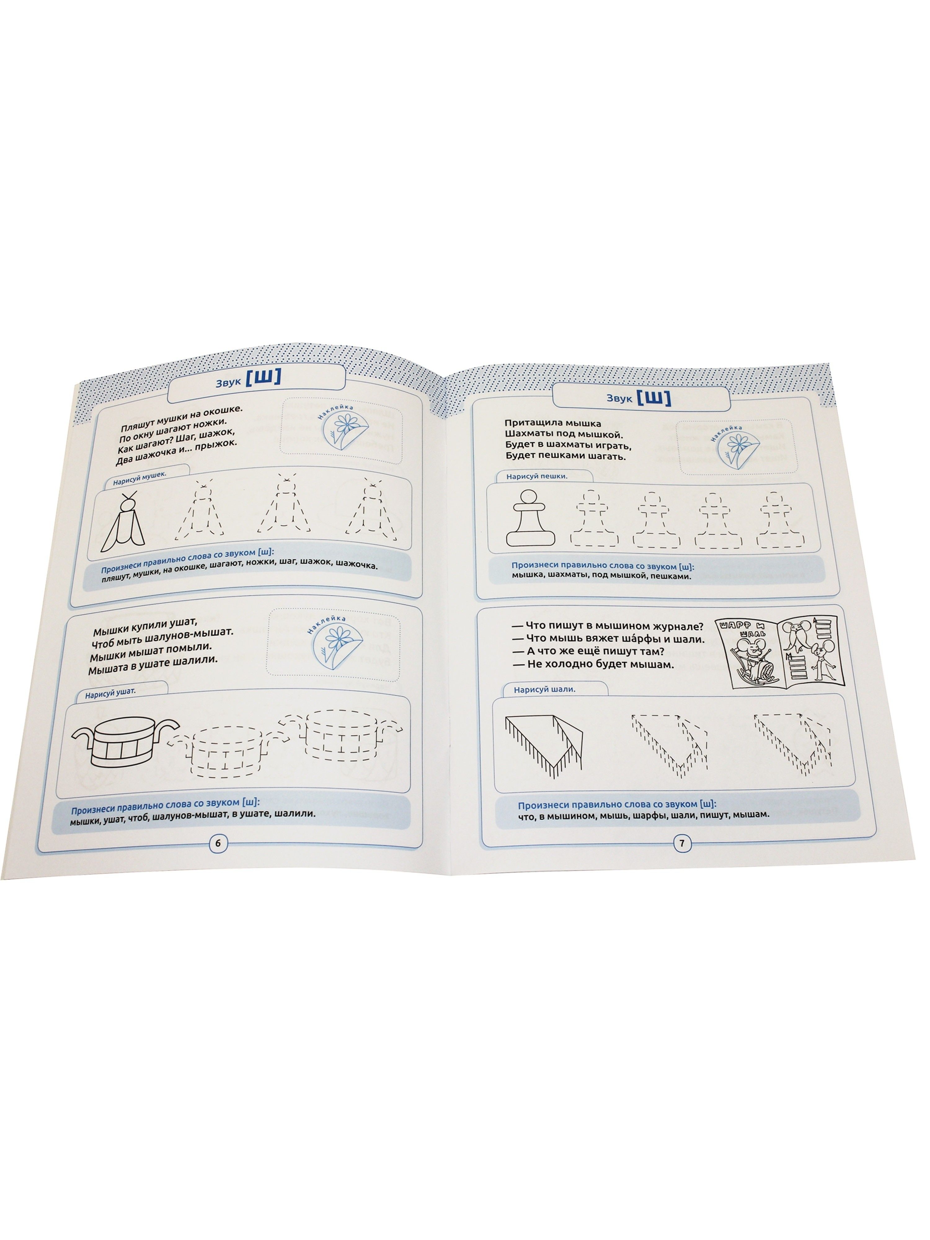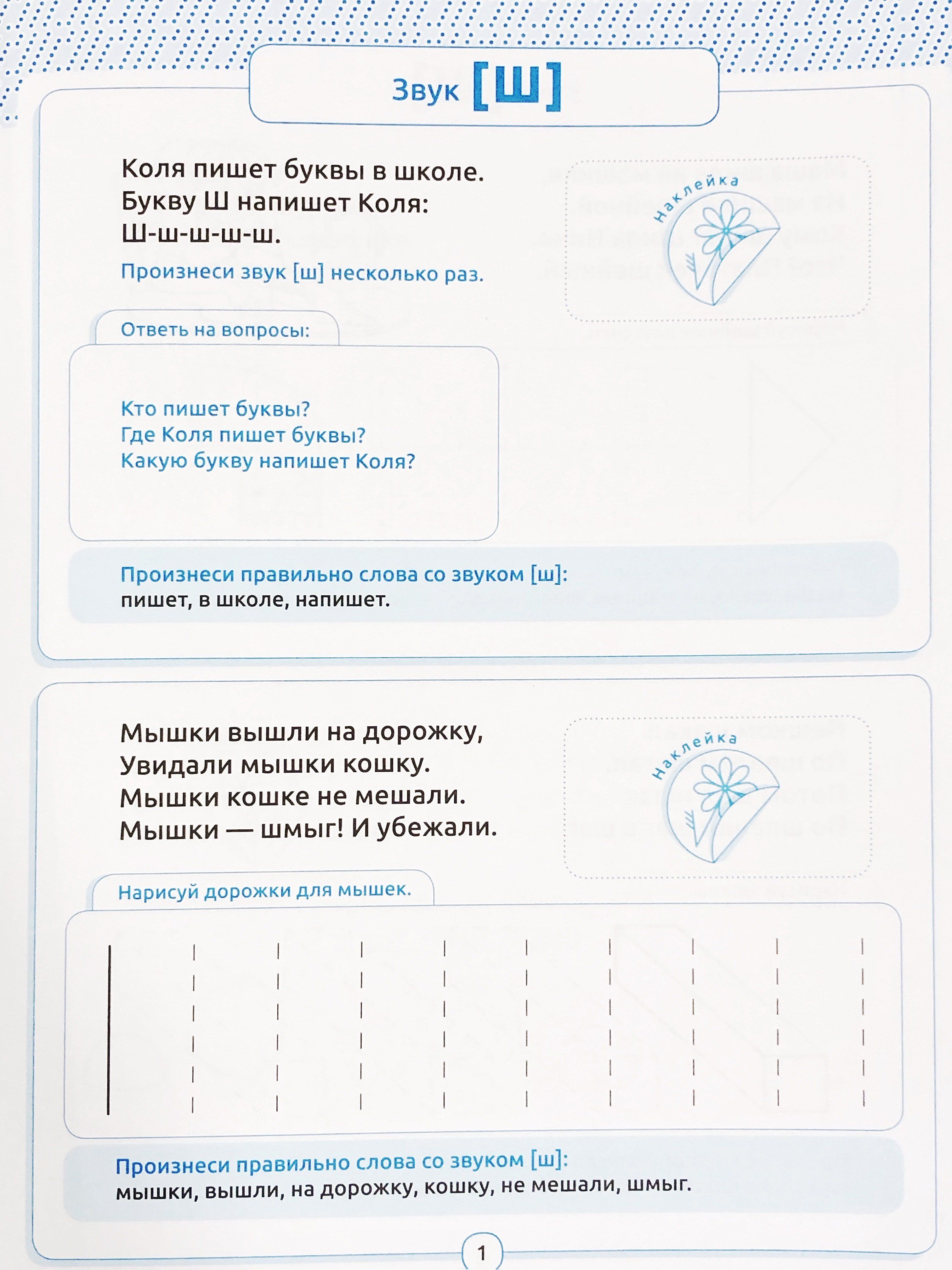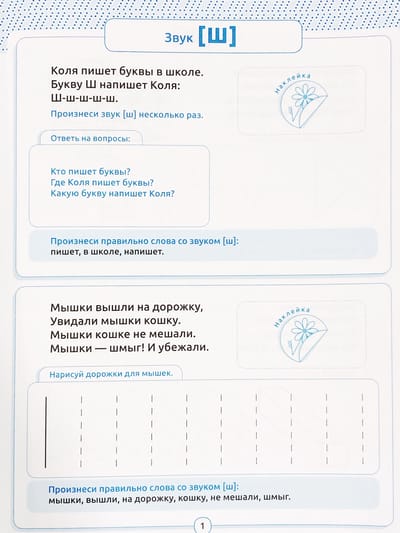Speaking and drawing. Hissing sounds. Ages 5-7. Workbook with stickers.