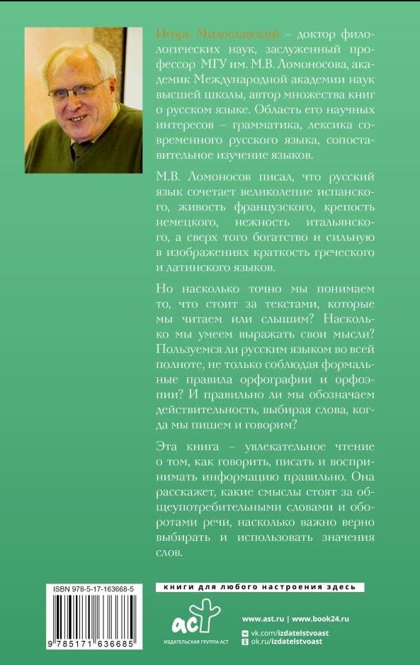 Igor Miloslavsky is a Doctor of Philology, Professor Emeritus of Lomonosov Moscow State University, Academician of the International Academy of Higher School Sciences, and author of many books on the Russian language. His research interests include grammar, lexicon of modern Russian language, comparative study of languages.