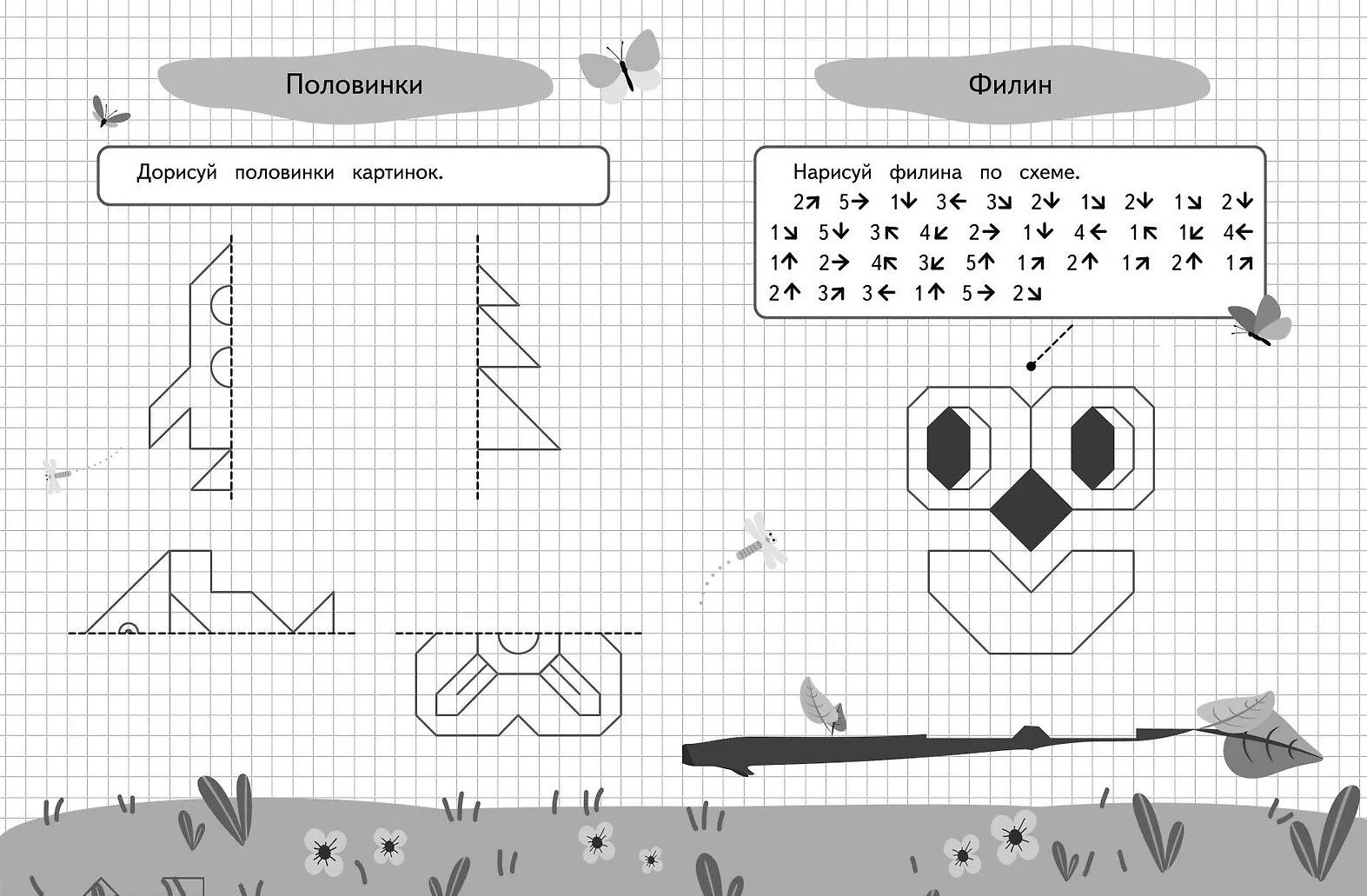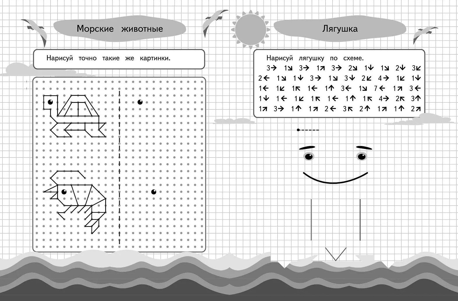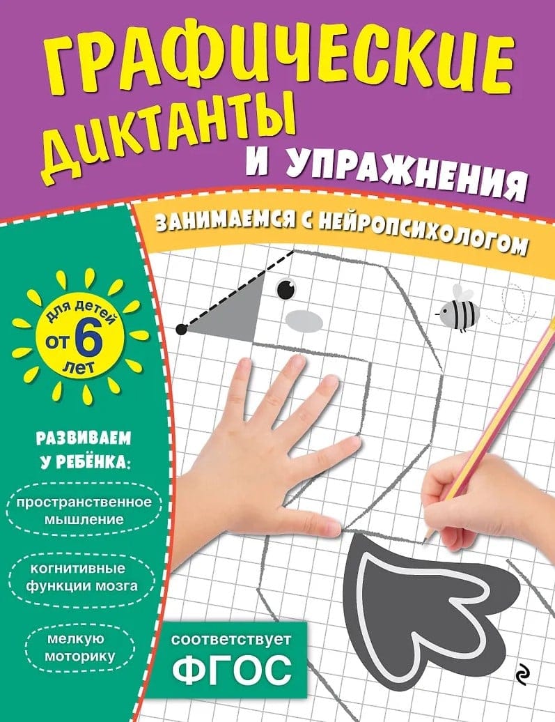 This book from Eksmo Publishing House will help preschoolers learn to count to ten, write numbers and simple drawing diagrams, navigate a sheet of paper, collaborate with an adult dictating a task, and develop auditory perception, fine motor skills, spatial and logical thinking. Graphic dictations train attention and teach children precision and accuracy when drawing. It's also very interesting and engaging! The pages of the manual feature standard grids, and by solving game-like graphic problems on a sheet of paper, children will become accustomed to working in a standard notebook format. The exercises are designed to gradually increase in difficulty. A simple pencil is best for working in a notebook, allowing children to develop proper hand position and pressure. This manual will help parents productively spend leisure time with their preschooler, while helping their children become more attentive, assiduous, and independent, and easily prepare for school.