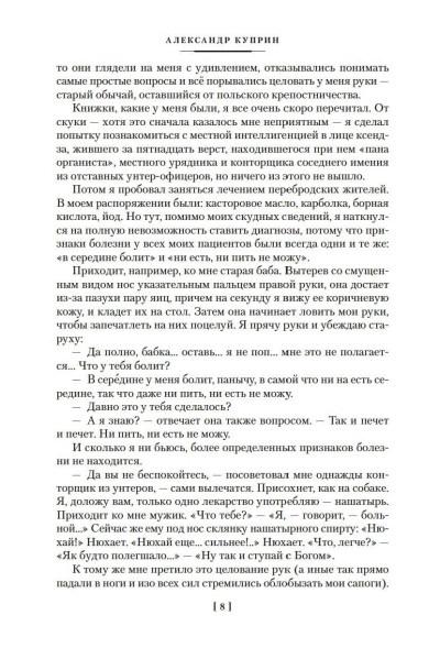 Alexander Ivanovich Kuprin is an outstanding master of the word, heir to the realistic traditions of Russian classical literature. Absolute accuracy of detail and subtle lyricism, "apt and without excess generous language" (Bunin), simplicity, clarity and depth - the hallmarks of Kuprin's style. Literary recognition came to him not immediately. Twenty-three years old, Alexander Kuprin, a lieutenant of the infantry Dneprovsky regiment, retired, after which he changed many professions: worked as a reporter, grew tobacco, served as a manager for the construction of the house, was a surveyor, psalmist and actor, studied dental work ... These various activities gave him a rich material for creativity, which with optical precision reflected life in all its many facets. Admiration for the incomprehensible beauty and diversity of the world and inexhaustible vitality are combined in his work with a keen sensitivity to other people's pain and a complex palette of subtle mental experiences. This edition includes the most famous works of Alexander Kuprin, including the novels "Olesya", "Pomegranate Bracelet", "The Pit", "The Duel", as well as the stories "White Poodle", "Lilac Bush", "Blue Star" and others.