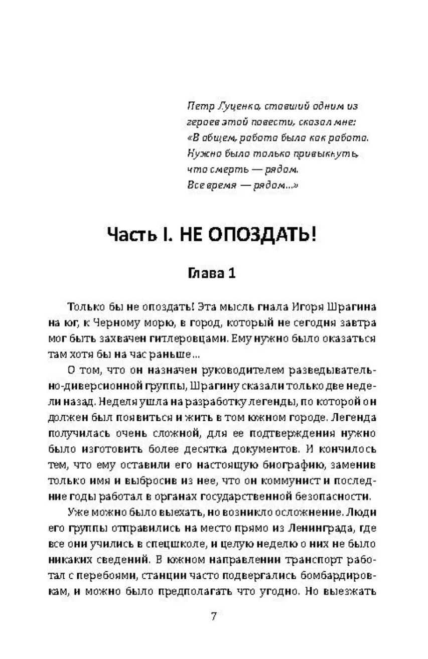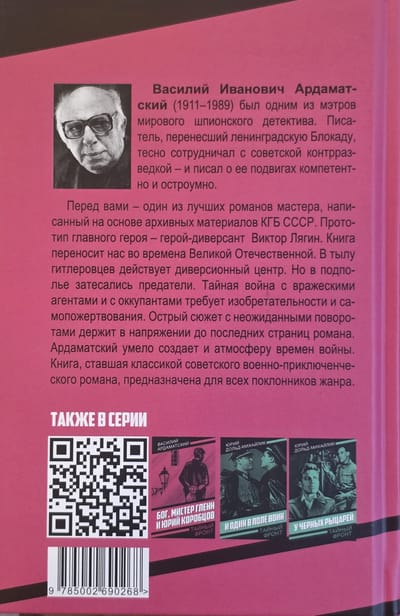 Vasily Ivanovich Ardamatsky (1911 – 1989) – writer, war correspondent, screenwriter – is deservedly considered a classic of the adventure genre. Before you is one of the best novels of the master, written on the basis of archival materials of the KGB of the USSR. The prototype of the main character is the hero-saboteur Viktor Lyagin. The book takes us to the times of the Great Patriotic War. A sabotage center operates behind Nazi lines. But traitors have infiltrated the underground. A secret war with enemy agents and occupiers requires ingenuity and self-sacrifice. A sharp plot with unexpected twists keeps you in suspense until the last pages of the novel. Ardamatsky skillfully creates the atmosphere of the war. The book, which has become a classic of the Soviet military adventure novel, is intended for all fans of the genre.