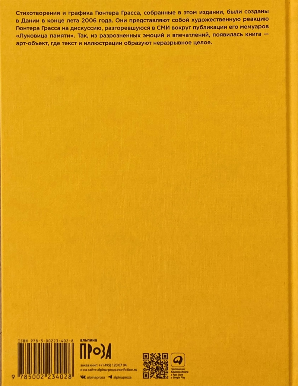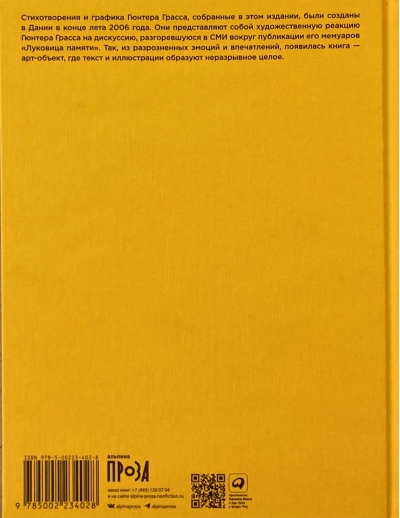The poems and graphics of Günter Grass collected in this volume were written in Denmark in late summer 2006. They represent the artistic reaction of Günter Grass to the media discussion surrounding the publication of his memoir The Memory Bowl. From disparate emotions and impressions, Grass created the book as an art object, where text and illustrations form an inseparable whole.