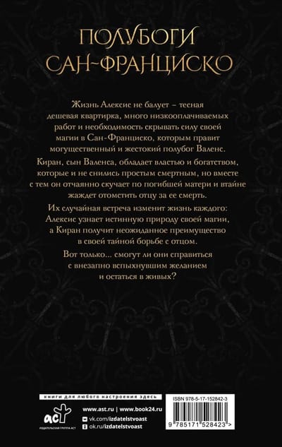 Alexis' life is not spoiled - a cramped, cheap apartment, many low-paying jobs, and the need to hide the power of her magic in San Francisco, ruled by the powerful and cruel demigod Valens, Kieran, Valens' son, has power and wealth beyond the dreams of mere mortals, but he also desperately misses his dead mother and secretly longs to avenge his father for her death. Their chance meeting will change everyone's life: Alexis will learn the true nature of her magic, and Kieran will gain an unexpected advantage in his secret struggle with his father. Except... will they be able to handle their sudden desire and stay alive?