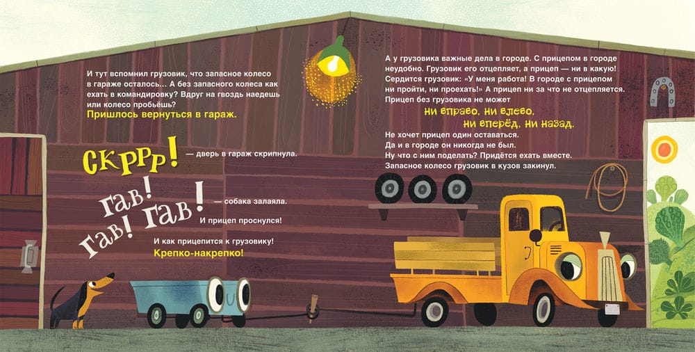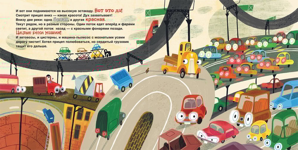 "Truck and trailer go on a business trip" - the second story about the beloved by all the kids heroes of the book "This is a truck, and this is a trailer" young writer Anastasia Orlova. The truck and the trailer are going on the road again! This time they are going to the city, on a business trip. Ahead is a long road, competition with a jeep, meeting with a cute pink car and many, many adventures.