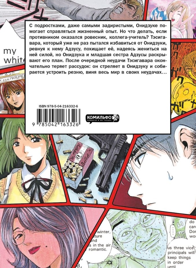 Onizuka's life experience helps him cope with teenagers, even the most cocky ones. But what if the opponent is a peer, a fellow teacher? Teshigawara, who has already tried to get rid of Onizuka more than once, Azusa, being jealous of him, kidnaps her, hoping to marry her by force, but Onizuka and Azusa's younger sister uncover his plan. After another failure, Teshigawara finally loses his mind: he shoots Onizuka and is going to commit a massacre, blaming the whole world for his failures...