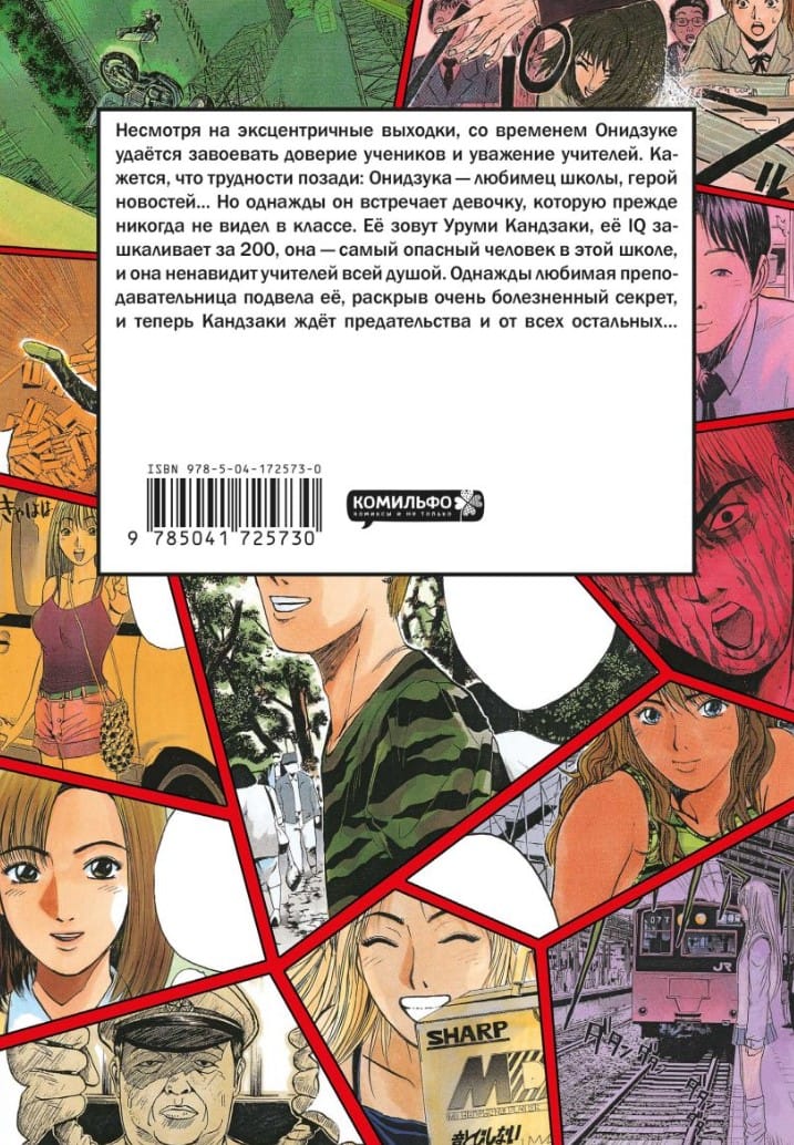 Despite his eccentric behavior, Onizuka eventually manages to earn the trust of his students and the respect of his teachers. It seems his difficulties are behind him: Onizuka is the school's favorite, a news anchor... But one day, he meets a girl he's never seen in class before. Her name is Urumi Kanzaki, her IQ is over 200, she's the most dangerous person in the school, and she hates the teachers with all her heart. One day, her favorite teacher let her down by revealing a deeply painful secret, and now Kanzaki expects betrayal from everyone else too...