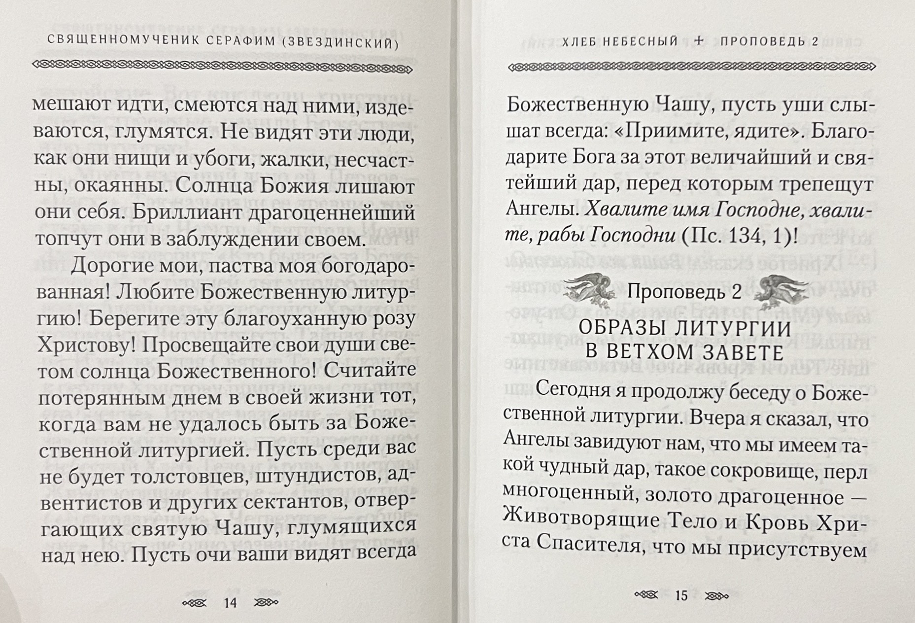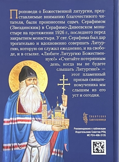 The sermons about the Divine Liturgy, presented to the attention of the pious reader, were uttered by the Scm. Seraphim (Zvezdinsky) in the Seraphim-Diveevsky monastery during 1926, the last before the closure of the monastery. Svt. Seraphim was gifted with touching and inspiration to celebrate the Liturgy, which he served daily, both in freedom and in exile. “Love the Divine Liturgy!” “Consider the day when you will not hear the Liturgy!” – this fiery call of the hieromartyr we hear from his mouth even today.