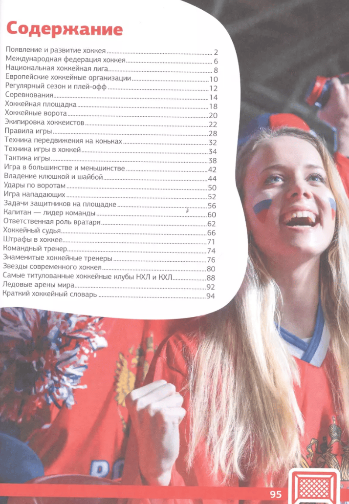 This book is dedicated to such a popular and challenging sport as ice hockey. It tells about the history of its origin, further development and formation of rules, as well as about famous competitions, famous clubs, legendary players and coaches. The book will help you choose the right equipment, explain the structure of the hockey court, familiarize you with the basic rules, tactics and techniques of the game and even teach some feints - clever tricks that allow you to beat your opponent. The versatile information presented on these pages, accompanied by many photos of world hockey stars, will interest any reader, and especially novice hockey players.