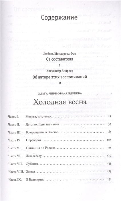 Cold Spring. Years of Exile: 1907-1921 is a book of memoirs by Olga Chernova Andreeva, daughter of Social Revolutionary Party leader Viktor Chernov and wife of writer Vadim Andreeva. She spent her childhood in hot Italy