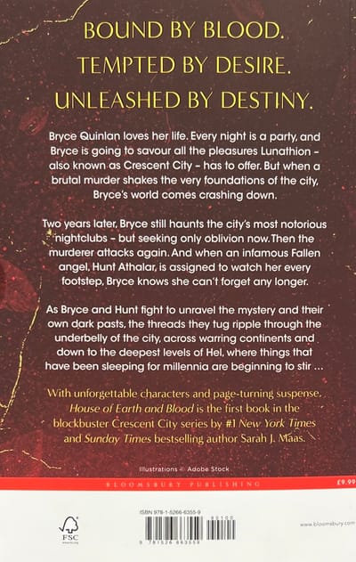 Half-Fae, half-human Bryce Quinlan loves her life. Every night is a party and Bryce is going to savour all the pleasures Lunathion - also known as Crescent City - has to offer. But then a brutal murder shakes the very foundations of the city, and brings Bryce's world crashing down. Two years later, Bryce still haunts the city's most notorious nightclubs - but seeking only oblivion now. Then the murderer attacks again. And when an infamous Fallen angel, Hunt Athalar, is assigned to watch her every footstep, Bryce knows she can't forget any longer. As Bryce and Hunt fight to unravel the mystery, and their own dark pasts, the threads they tug ripple through the underbelly of the city, across warring continents, and down to the deepest levels of Hel, where things that have been sleeping for millennia are beginning to stir ...With unforgettable characters and page-turning suspense, this richly inventive new fantasy series by #1 New York Times bestselling author Sarah J. Maas delves into the heartache of loss, the price of freedom - and the power of love.