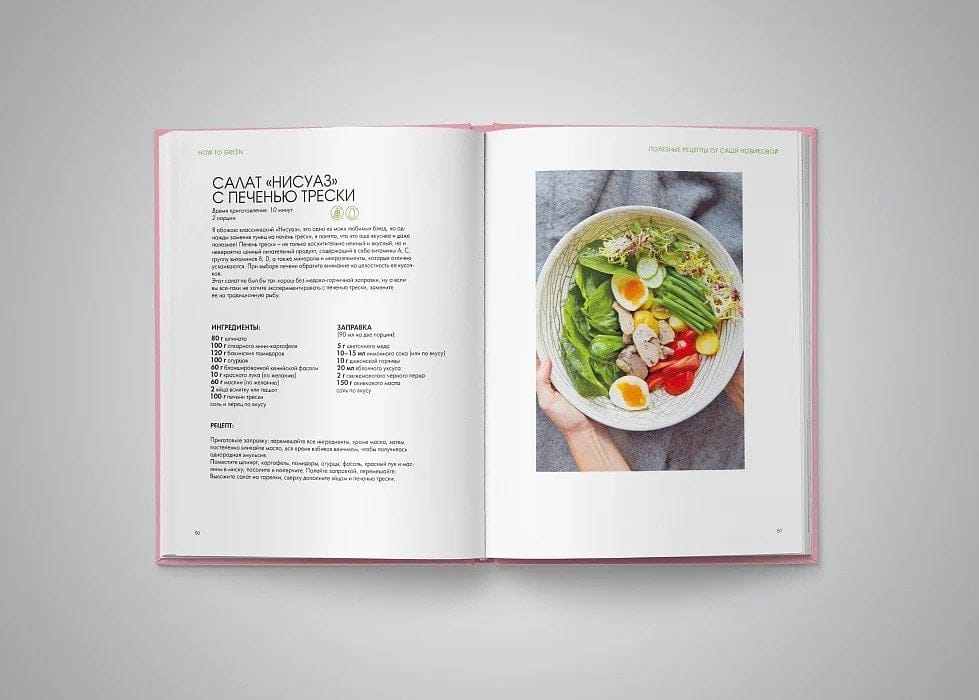 Alexandra Novikova is a cook, founder of a café and an internet project about proper nutrition and healthy lifestyle How to Green, and studied dietetics at the Institute for Integrative Nutrition. In her book, Sasha summarizes both her own experience and the latest trends and recent research of modern nutritionists, doctors and scientists, adapting them for Russian readers. What is this book about? First of all, about how to become happy! Happiness is made up of many little things, but the most important thing is how we feel every day, which largely depends on how we eat. From pasta and risotto to a signature fish burger, from seafood dishes to wholesome homemade desserts, the book includes both completely vegan recipes and those that meat lovers won't be able to resist. The book will help you create a tasty, original, and most importantly healthy menu for breakfast, lunch and dinner, and useful information and tips will help you improve the quality of life and feel much better.