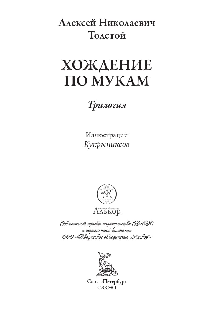Alexei Nikolaevich Tolstoy's (1882-1945) famous trilogy, "The Walking on Flours," traces the fates of Russian intellectuals during and after the 1917 revolution. The book is adorned with dozens of black-and-white illustrations by Kukryniksy. Under this pseudonym were three artists: Mikhail Vasilyevich Kupriyanov, Porfiry Nikitich Krylov and Nikolai Alexandrovich Sokolov. They became famous as outstanding masters of satirical drawing. In this edition, readers can get acquainted with their illustrations, made in a realistic manner. At the end of the book there are sketches of Kukryniks' drawings for Tolstoy's novel.