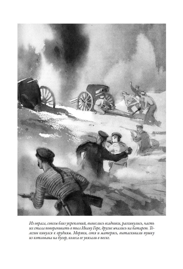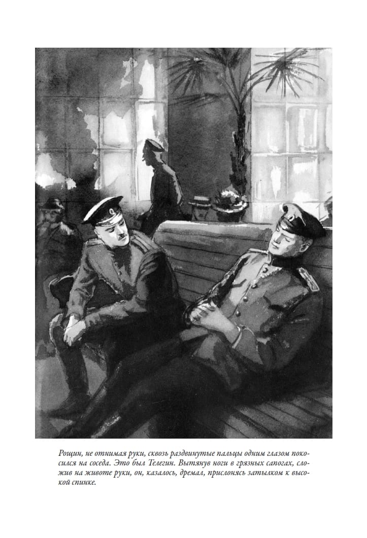 Alexei Tolstoy began writing the first novel of his famous trilogy in 1918 in Odessa shortly before emigration. "Sisters" was published four years later in Berlin. The writer masterfully described the demise of the "Silver Age" and how the whirlwinds of World War I and the ensuing storm of two revolutions dispersed on different sides of the barricades of Russian intellectuals, relatives, loved ones. Tolstoy could not live outside Russia and soon returned to his homeland. His novel "The Eighteenth Year" was published in the USSR in 1928. It became the second part of the trilogy "Walking on Flours", which found its final form only in 1941. The writer repeatedly remodeled the text of the trilogy, so that the book could get into the hands of readers. In March 1943, this work was awarded the Stalin Prize. Commenting on his long-suffering trilogy, A. N. Tolstoy wrote that he tried to express in it the feeling of a huge epoch, and this work - "walking conscience of the author's suffering, hopes, raptures, falls, despondency and ups". As a result, along with "Quiet Don" by Sholokhov and "The White Guard" by Bulgakov, Tolstoy's trilogy has taken its rightful place in the golden fund of Russian literature. The book is decorated with illustrations made by Kukryniksy. Under this unusual pseudonym created three artists - Mikhail Vasilyevich Kupriyanov (1903-1991), Porfiry Nikitich Krylov (1902-1990) and Nikolai Alexandrovich Sokolov (1903-2000). There was hardly a person in the Soviet Union who had not seen drawings, cartoons or caricatures made by Kukryniksy. By their expressive posters it was possible to trace all the key events of the USSR's war with Nazi Germany, as well as the main moments of the post-war time, taking place on the world political arena. Drawings Kukryniksy on the evil of the day regularly appeared in the most influential print edition of the country - the newspaper "Pravda". The acquaintance of the three artists took place when they were students of Moscow VHUTEMAS - Higher Art and Technical Workshops. Started Kukryniksy their creative path with illustrations for stories and satirical drawings, which caustically ridiculed the surrounding reality. Kukryniksy perfectly showed themselves as book illustrators. Experiment in this field, a talented trio of masters began at the dawn of their creative activity. The skill of Kukryniksy allowed them to choose an original style for each specific work, for the illustration of which they undertook. Their drawings for the trilogy of A. N. Tolstoy trilogy prove it perfectly.