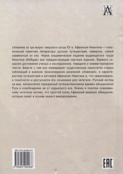 eliminates significant shortcomings of the old publications in the analysis of the origin of the manuscripts of the Khozheniye, in the characterization of the journey and views of Afanasy Nikitin, and, importantly, in the comprehensibility and accessibility of his work for the reader. The Russian view of the world, beautifully conveyed by the traveler of the times of the unification of Russia and its liberation from the Horde yoke, is close and understandable to the modern reader because the simple merchant Athanasius expressed the beliefs that underlie our worldview. The publication is addressed to students and teachers of historical specialties, political scientists and all those interested in the history of Russia.
