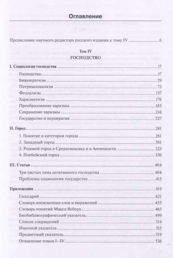 The chapters included in the second volume demonstrate the formation of rationality structures that regulate the action of communities at different stages of historical development. The domestic community, oikos, ethnic and political formations, in particular parties and states, are examined. Of particular note is the huge chapter on religious communities, which is essentially a condensed sketch of Weber's sociology of religion. The publication is intended for sociologists, political scientists, historians, economists, and in general for specialists in a wide range of social and human sciences, as well as for readers interested in the problems of social and cultural development of modernity. The third volume includes two works devoted to the sociology of law. In the first of them, "Economy and Orders," the author characterizes the differences between sociological and legal approaches to the study of social processes, describes the specifics of normative systems (orders) of different levels, and shows the specifics of their impact on the economy. In the second work, "Conditions of Law Development", the formation and development of legal systems (primarily the three "great systems of law": Roman, English and European continental) is considered in the context of changes in the organization of the economy and structures of domination. Law acts here as a powerful factor in the rationalization of social life, which in turn is subjected to the rationalizing influence of the economy and social management. The publication is intended for sociologists, lawyers, political scientists, historians, and in general for specialists in a wide range of social and humanitarian sciences, as well as for readers interested in the problems of social and cultural development of modernity. The fourth volume includes works devoted to the problems of power and domination. In the first section, the author introduces the concept of "domination" and examines four historically manifested types of domination: patriarchalism, patrimonialism, bureaucratism, and charisma. The second section is titled "The City"; it is a coherent historical sketch of the emergence of the European city as a specific community involving a specific type of domination. The last, third section includes articles that briefly characterize the four types of domination mentioned above. Unlike the previous volumes, which are mainly conceptual in nature, the fourth volume contains a wealth of historical material. Almost all the works included in it are published in Russian for the first time. The publication is intended for sociologists, political scientists, historians, and other specialists in a wide range of social and human sciences, as well as for readers interested in the problems of social and cultural development of modernity.