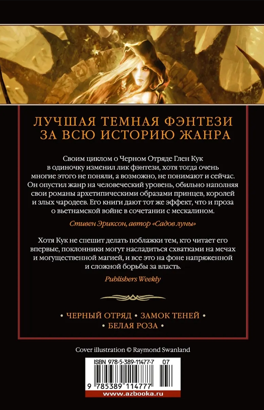 Darkness battles darkness, and the Black Company wanders from country to country, hiring itself out to those willing to pay—for either a valiant battle or a bloody massacre. In the entire world, there are no equals to these stern, seasoned warriors, accustomed to burying their doubts with their fallen brothers. They have changed masters countless times. Now they are sent into battle by a monstrous Lady, and among her lieutenants are the most powerful sorcerers—the Ten Taken. But the enemies who have risen in rebellion against the Lady are equally powerful. Their armies are countless, and they believe that an ancient prophecy is coming true: somewhere, the White Rose has already been born, which will lead them to victory.