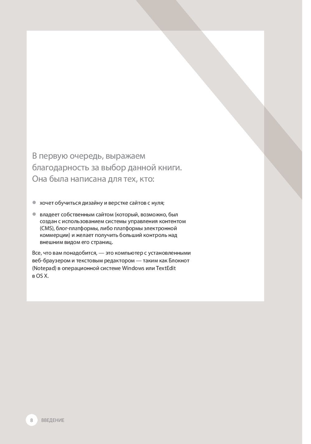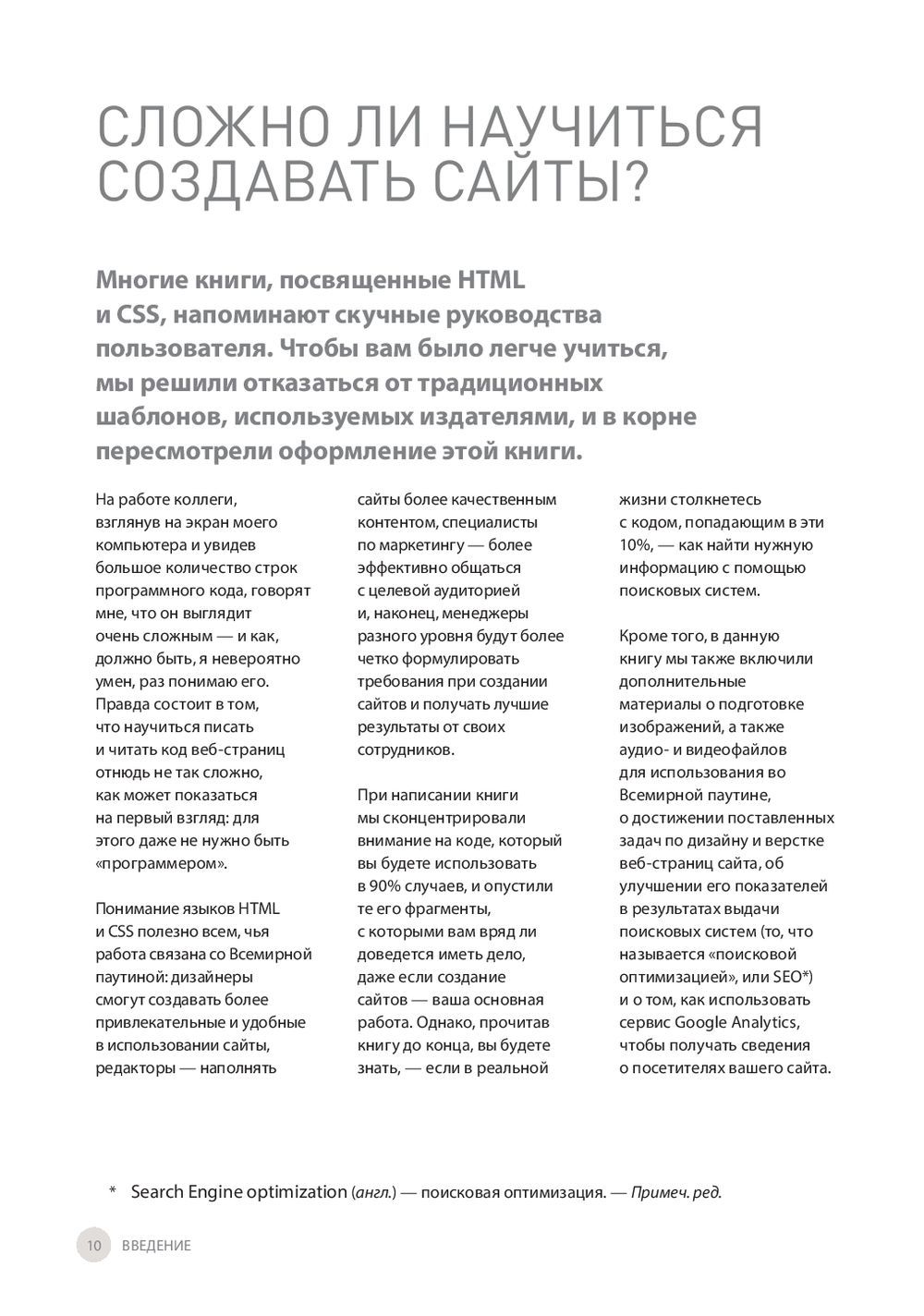 This book is the easiest and most fun way to learn HTML and CSS. Whether your challenge is to design and develop a website from scratch or to gain more control over an existing site, this book will help you create attractive, user-friendly web content. A simple visual way of presenting information with clear examples and a small snippet of code introduces a new topic on every page. You will find practical advice on how to organize and design the pages of your website and after reading the book you will be able to develop your own professional-looking and user-friendly website. No special skills are required to master the book. This book is for web designers and programmers, content managers and content editors, marketers and e-sales managers, bloggers and hobbyists. You will learn how to layout pages in HTML and CSS3, learn about the structure of web pages and sites, preparing images, audio and video content, managing typography and layout design.