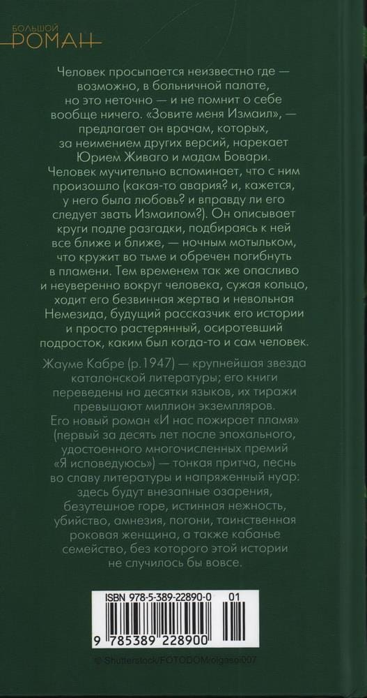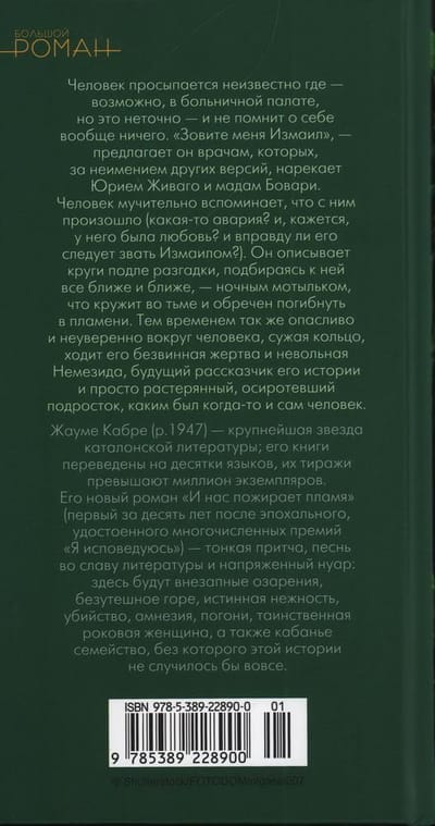 The man wakes up in an unknown place - perhaps in a hospital room, but this is not accurate - and does not remember anything about himself at all. "Call me Ishmael," he suggests to the doctors, whom, for lack of other versions, he calls Yuri Zhivago and Madame Bovary. The man painfully recalls what happened to him (some kind of accident? and, it seems, he had love? and should he really be called Ishmael?). He describes circles around the clue, getting closer and closer to it - like a night moth that circles in the darkness and is doomed to perish in the flames. Meanwhile, just as cautiously and uncertainly around the man, narrowing the ring, walks his innocent victim and unwilling Nemesis, the future narrator of his story and just a confused orphaned teenager, as was once the man himself. Jaume Cabré (b. 1947) is a major star of Catalan literature; his books have been translated into dozens of languages and have sold over a million copies. His new novel "And the flames devour us" (the first in ten years after the epochal, award-winning "I Confess") - a subtle parable, a song for the glory of literature and intense noir: there will be sudden insights, inconsolable grief, true tenderness, murder, amnesia, chases, a mysterious femme fatale, as well as the boar family, without which this story would not have happened at all.