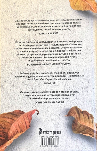 Olivia struggles to understand not only herself, her actions, and her feelings, but also everything happening around her, the lives of the people she encounters. Whether it's a teenage girl grieving the loss of her father and coming to terms with her sexuality; a young woman about to give birth in the middle of a holiday; an older man who hasn't spoken to his wife for thirty years and suddenly learns something incredible about his daughter; or her own son who doesn't understand her. Olivia, with her incredible sense of humor, amuses, frightens, touches, and inspires. In modern world literature, there are few characters as vibrant and significant.