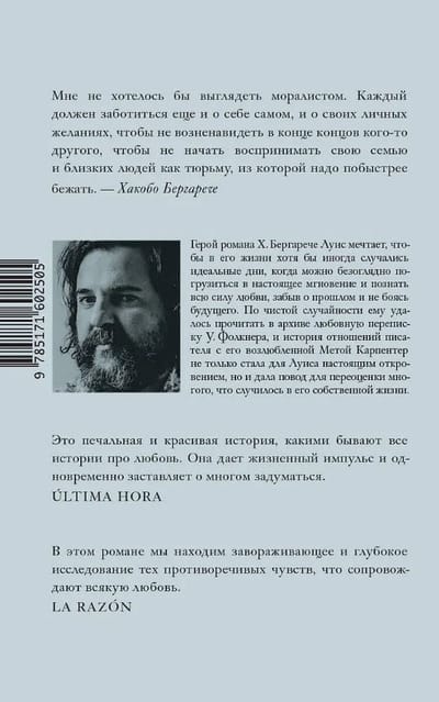 The novel's hero, journalist Louis, tired of his job and, most importantly, of his family life, comes to a convention in Austin (Texas) and meets a woman there who fills his life with new meaning. Louis always dreamed of experiencing, at least occasionally, "perfect days" marked by extreme acuity of feelings and boundless freedom. He used the letters of W. Faulkner, which he accidentally found in the Austin University archive, as an example. It is precisely these "perfect days" that Faulkner tries to restore, addressing his beloved Meta Carpenter. But can happiness and love be long-lasting? How can boredom and everyday routine prevent them from being destroyed? Bergareche considers these questions to be eternal and therefore does not try to give unambiguous answers to them. Nevertheless, the hero shares with readers some recipes drawn from his own life experience.