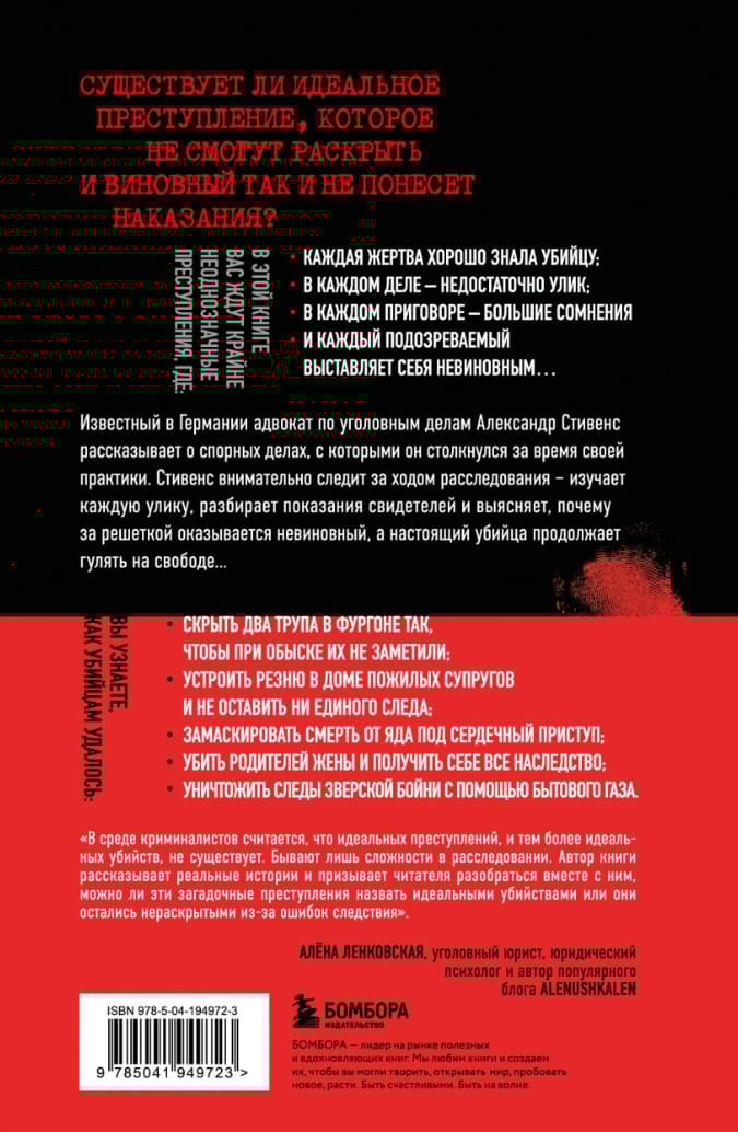 In this book, Alexander Stevens, a leading German criminal defense lawyer, examines in detail the most controversial cases from his practice, in which each suspect denies his guilt.