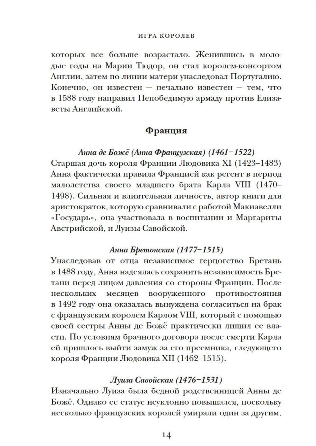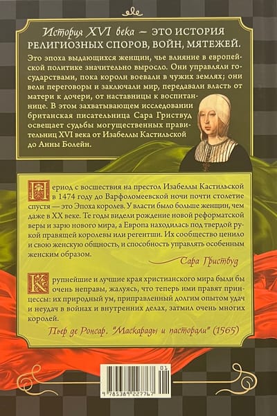 "In the summer of 1513, a girl appeared at the court of Margaret of Austria, the daughter of a courtier trained to understand a dangerous palace dance. She knew that the best defense for a girl was her intelligence, that the family's wealth could change at the whim of the king, and that a great game of chess was being played out on the European political stage, in which even she could play a role. No one, of course, had any idea how significant that role would be." (Sarah Gristwood) Anne Boleyn and Margaret of Austria, at whose court she served and was brought up. Louisa of Savoy and her daughter, one of the first French writers, Margaret of Navarre. Christina of Denmark and Catherine de Medici, rumored to have a passion for poisons. These are just a few of the famous women who participated in, and often completely directed, sixteenth-century European politics. These amazing rulers deliberately used their status to run things differently, recognized sisterhood ties, found themselves pawns in someone else's game and used others in their own. In the chess game of European politics, it was the queen who became the key figure. The history of the sixteenth century is a gambit of queens.