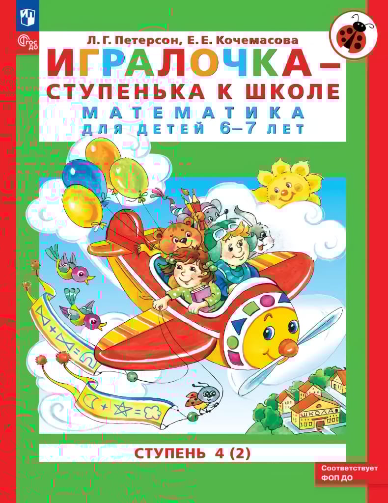 The Toy Manual, step 4 (2) is intended for the development of mathematical representations of children 6-7 years old. It is an integral part of the Toy kit for children 3-7 years old. The set also includes a program, methodological recommendations for teachers with scenarios of each lesson, demonstration and handout materials. Kit "Toy" is focused on the development of preschoolers thinking, creative abilities, interest in mathematics. It is included in the comprehensive program of preschool education “World of Discoveries”. It is the initial link of the continuous course of mathematics "Learning to learn" from 3 to 15 years. Its direct continuation is the textbooks of mathematics by L. G. Peterson for elementary and basic schools. The Toy Kit can be used in the system of preschool education and for individual work with children.
