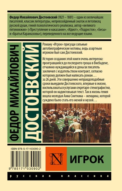 The novel "The Gambler" has strong autobiographical motifs, because Dostoevsky himself was a gambler. The story of the creation of this book is very interesting: lost to the last penny in Wiesbaden, desperate for money, the writer concluded a contract with the publisher, according to which he had to write a novel ... in 26 days. in 26 days. These completely implausible terms forced Dostoevsky, for the first time in his life, to use the services of a stenographer-secretary, to whom he dictated the text. This is how the young Anna Snitkina, the woman who was destined to become his wife and muse, entered the life of the genius....
