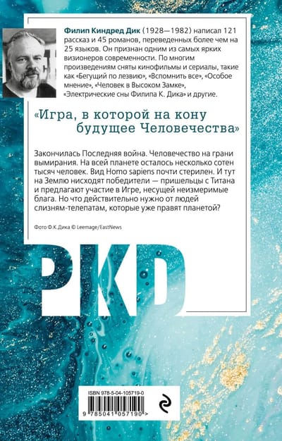 A novel by one of the most prominent science fiction writers of all time. The book is being released in the author's collection. Post-apocalypse by Philip K. Dick. Modern design and fine printing. Easy to read format. The Third World War is over. There are only a few hundred thousand people left on the planet. The only entertainment and meaning of life is the Game. The only goal is Luck. But it's time for the Big Game and Big Luck. A handful of people are forced to play for the fate of mankind with alien telepaths.