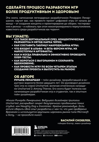 Richard Lemarchand is a game designer who has worked in the video game industry for over twenty years. He has overseen the design of three games in the Uncharted series, including the award-winning Uncharted 2: Among Thieves. His book will be useful for both aspiring game developers and students as well as experienced game designers.