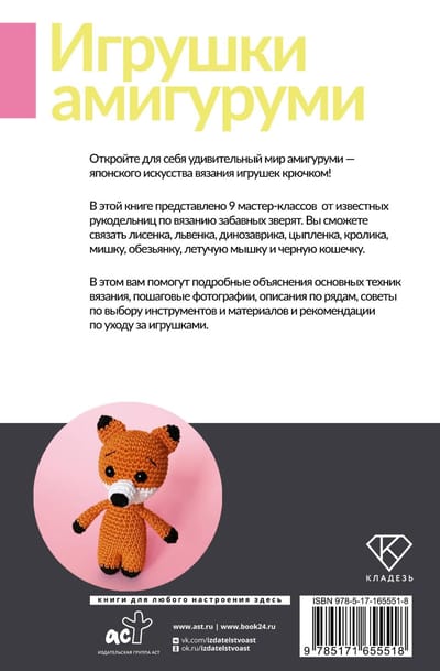Detailed explanations of basic knitting techniques, step-by-step photos, row-by-row descriptions, tips on choosing tools and materials, and recommendations on how to care for your toys will help you.