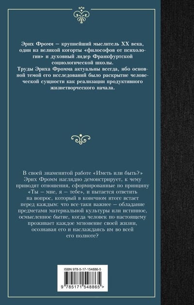 In his famous work "To Have or To Be?", the eminent psychoanalyst Erich Fromm vividly illustrates the consequences of relationships based on the principle "You to Me, I to You". He explores in detail the main question that eventually arises for everyone: what really matters - the possession of material values or true full being, when an individual consciously lives each moment of his life, comprehending it and enjoying its fullness?