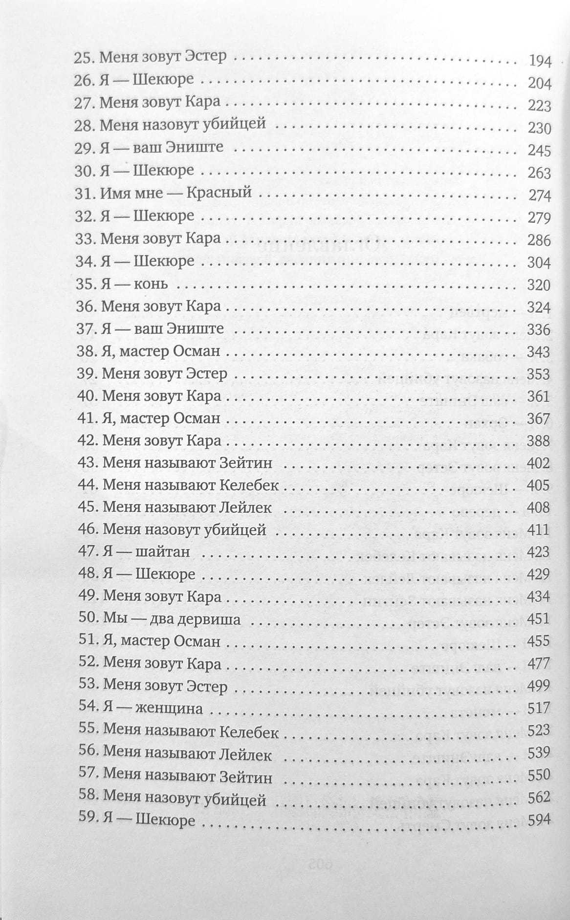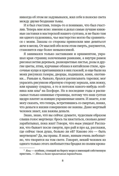 Four masters of Persian miniatures are commissioned to illustrate a secret book for the Sultan, so that his name and deeds will be immortalized and celebrated for centuries. However, rumors circulate throughout the city that the book violates the laws of the Muslim world, that it was created according to the principles of Venetian atheists, and that any unwary witness who dares to look at the forbidden pages will inevitably go blind. After the brutal murder of one of the artists, it becomes clear that continuing to work on the Sultan's commission is mortally dangerous, and the identity of the killer can only be determined by carefully examining the intricate lines of the mysterious drawing...