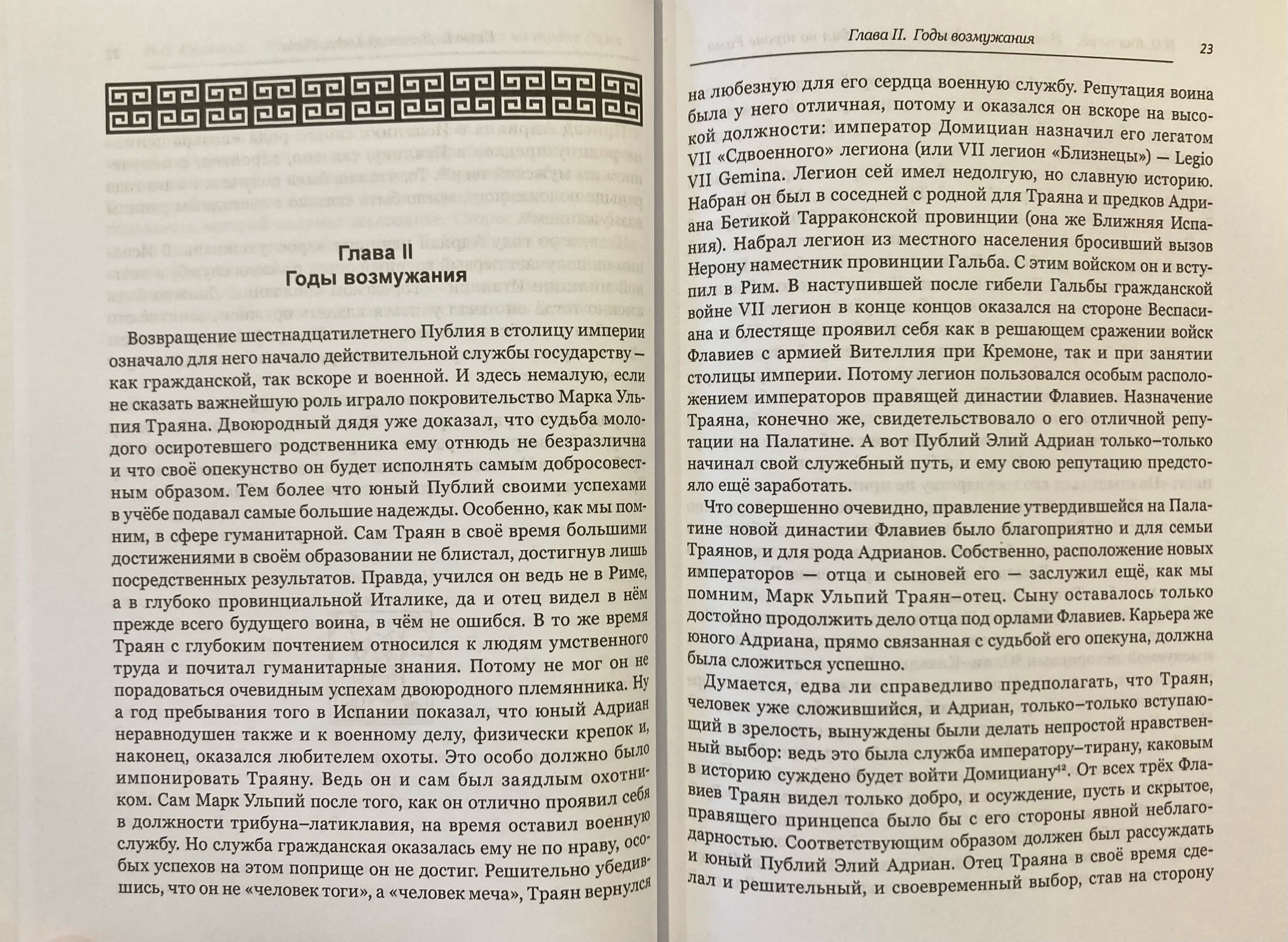 The monograph by Doctor of Historical Sciences, Professor I. O. Knyazky is dedicated to the life and reign of the Roman Emperor Hadrian (117-138). A brilliant intellectual, admirer and remarkable connoisseur of Hellenic culture, initiated into the Eleusinian mysteries, he was also a proven military leader who went through both of Trajan's Dacian campaigns. It was Publius Aelius Hadrian who became the successor of this emperor, recognized by the Senate of the Roman people as "the best princeps". During his twenty-one years of reign, Hadrian managed to leave an outstanding legacy in the Roman Empire. Having abandoned the aggressive policy of his predecessor, this emperor strengthened the borders of the state and ensured stability and prosperity in the provinces. The only exception was one of them, where the Third Jewish War broke out. Hadrian contributed in every way to the cultural rise of the Empire. Rome, his beloved Athens and many other cities were decorated with remarkable buildings. Hadrian is also known for his patronage of writers and philosophers. At the same time, he sometimes showed considerable cruelty, the victims of which were prominent military leaders and senators. It is worth noting another feature of the personality of the outstanding ruler: while admiring Hellenic culture, in matters of state Hadrian remained a Roman to the marrow of his bones. This is what ensured the Empire's power and prosperity.
