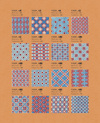 - 44 colorful geometric patterns in cross stitch and counted stitch.