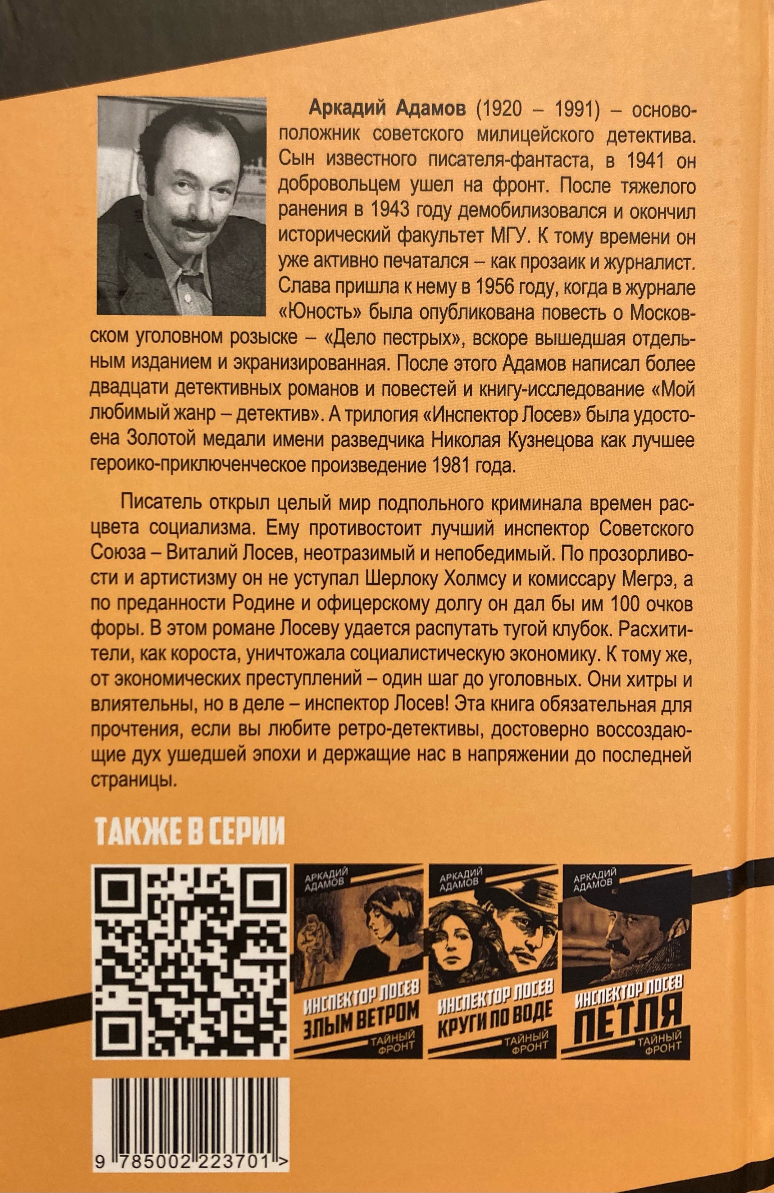 Arkady Grigorievich Adamov (1911 - 1989) - writer, founder of the Soviet police detective - opened a whole world of underground crime during the heyday of socialism. He is opposed by the best inspector of the Soviet Union - Vitaly Losev, irresistible and invincible. In insight and artistry, he was not inferior to Sherlock Holmes and Commissioner Maigret, and in devotion to the Motherland and officer's duty he would give them a 100-point head start. In this novel, Losev manages to unravel a tight ball. The embezzlers, like a scab, destroyed the socialist economy. In addition, from economic crimes - one step to criminal. They are cunning and influential, but in business - Inspector Losev! This book is a must-read if you like retro detectives that reliably recreate the spirit of a bygone era and keep us in suspense until the last page.