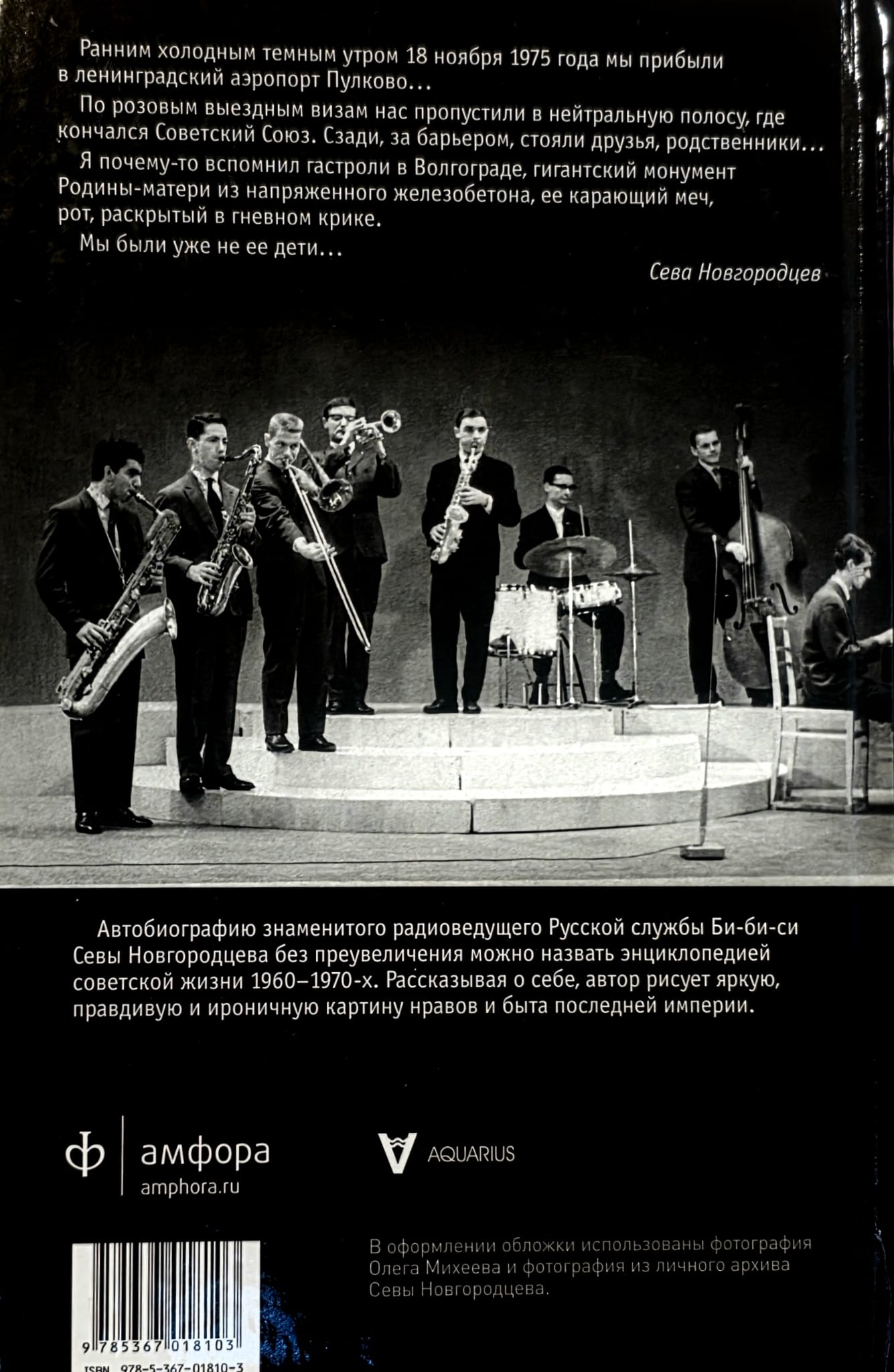 The autobiography of the renowned radio host of the BBC Russian Service, Seva Novgorodtsev, can, without exaggeration, be called an encyclopedia of Soviet life in the 1960s and 1970s. In telling his own story, the author paints a vivid, truthful, and ironic picture of the customs and everyday life of the last empire.