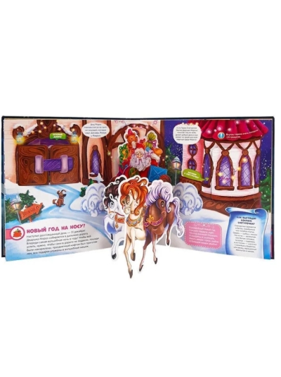 Within the pages of this book, your child will find interesting facts, funny poems, board games, riddles, magical predictions, and a real letter from Santa Claus! Vibrant illustrations, 3D structures, windows, valves, "movers," and "spinners" – a multitude of surprises that will give your little one countless pleasant moments! Give your little one an unforgettable holiday with the interactive encyclopedia "The Big New Year's Book"!