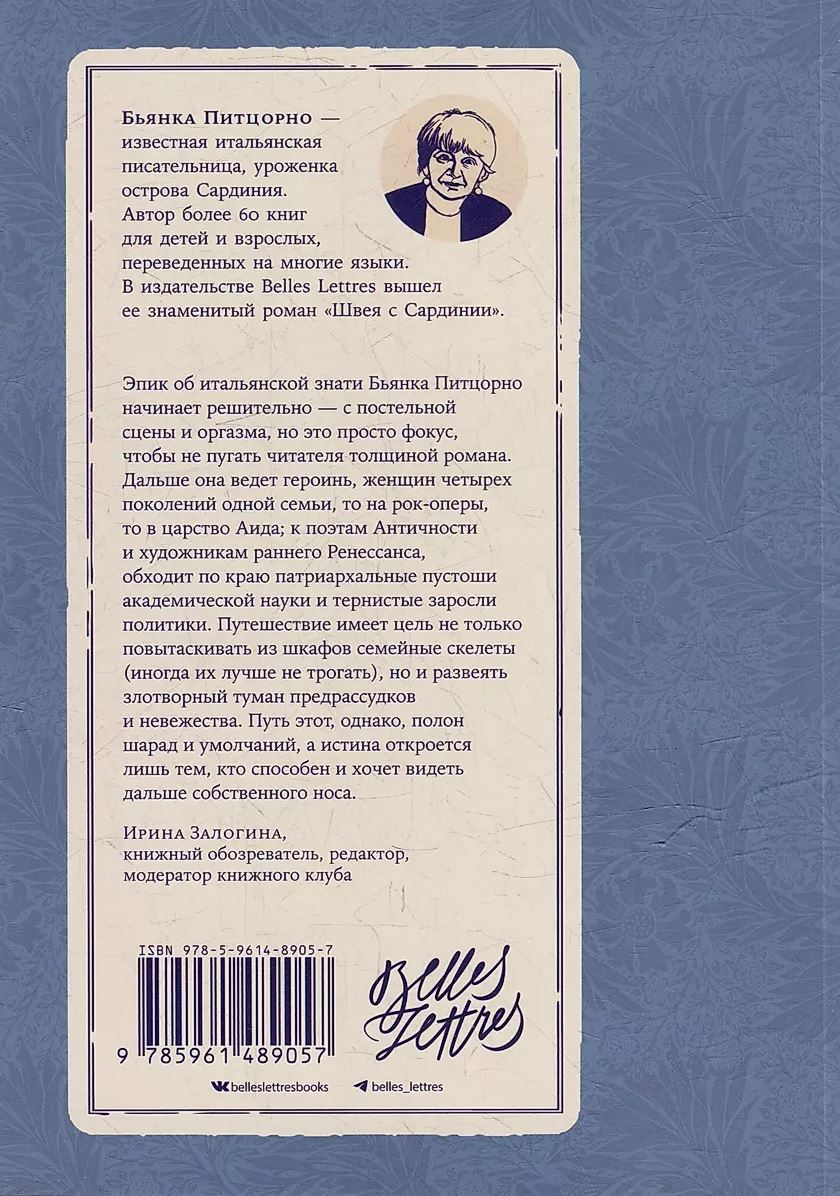 Bianca Pitzorno masterfully weaves together times and genres: family saga and psychological prose, magical realism and sentimental narrative, the color of Italy of the XVI and XIX centuries and modernity.