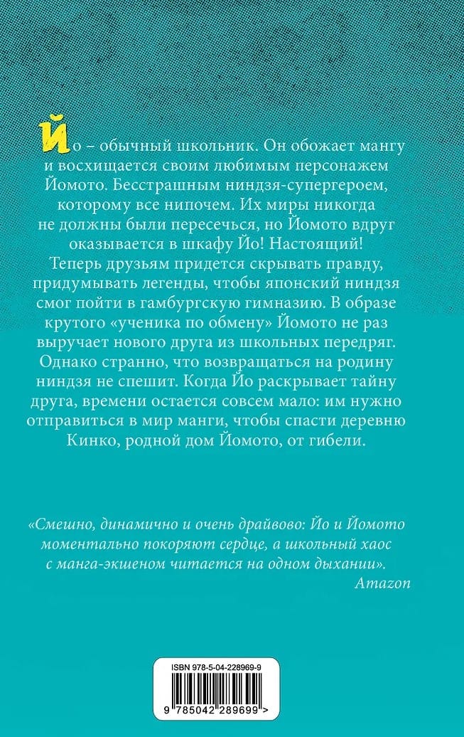Now the friends must hide the truth and invent stories so the Japanese ninja can attend a Hamburg high school. As a cool "exchange student," Yomoto repeatedly rescues his new friend from school troubles. However, strangely, the ninja is in no hurry to return to his homeland. When Yoh uncovers his friend's secret, time is running out: they must travel to the world of manga to save Kinko Village, Yomoto's home, from destruction.